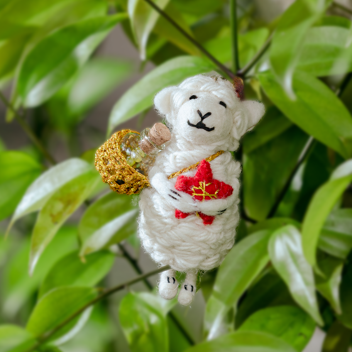 小羊懷裡捧著一顆心,提醒自己與他人:愛不是只有給予,更需要好好珍惜與照顧自己。