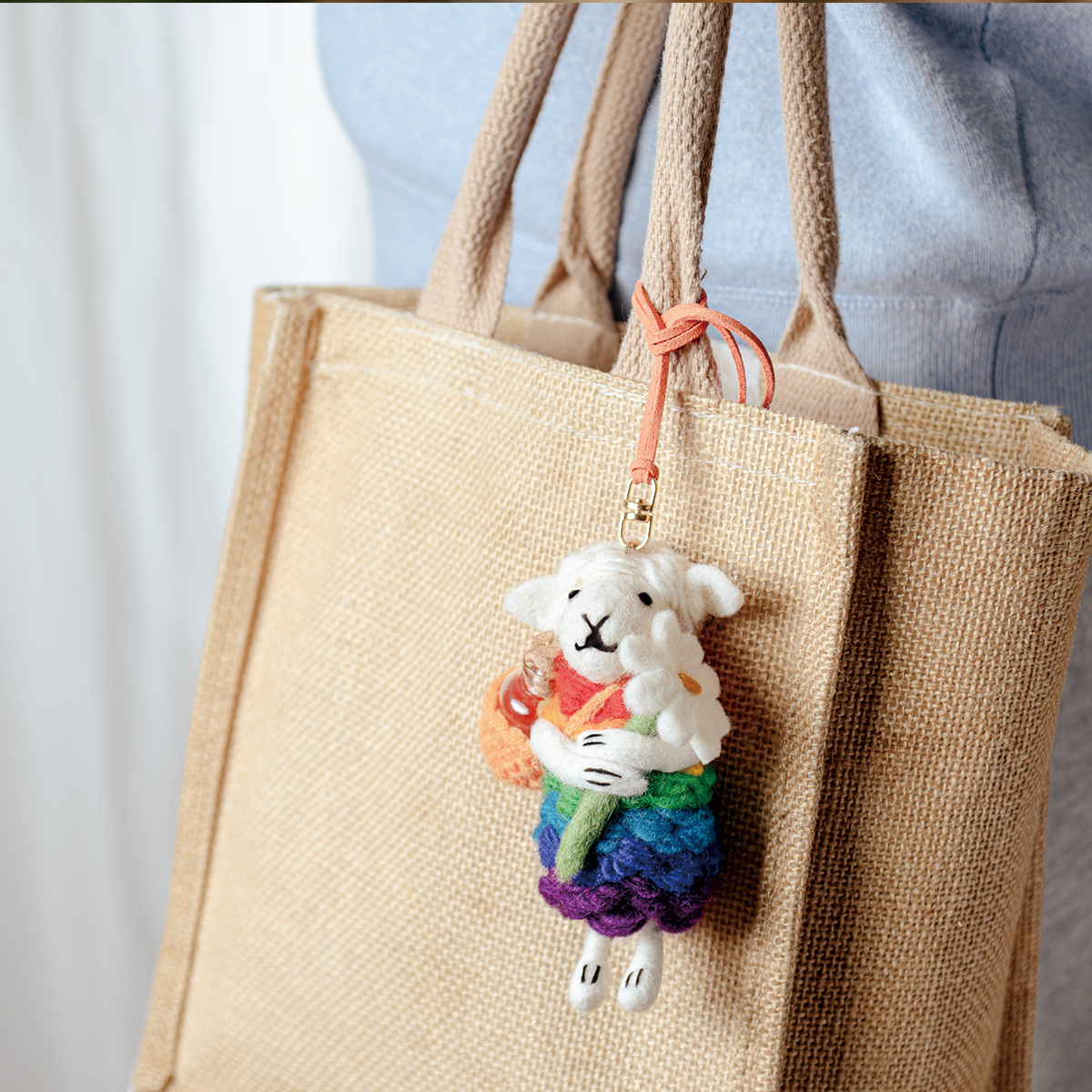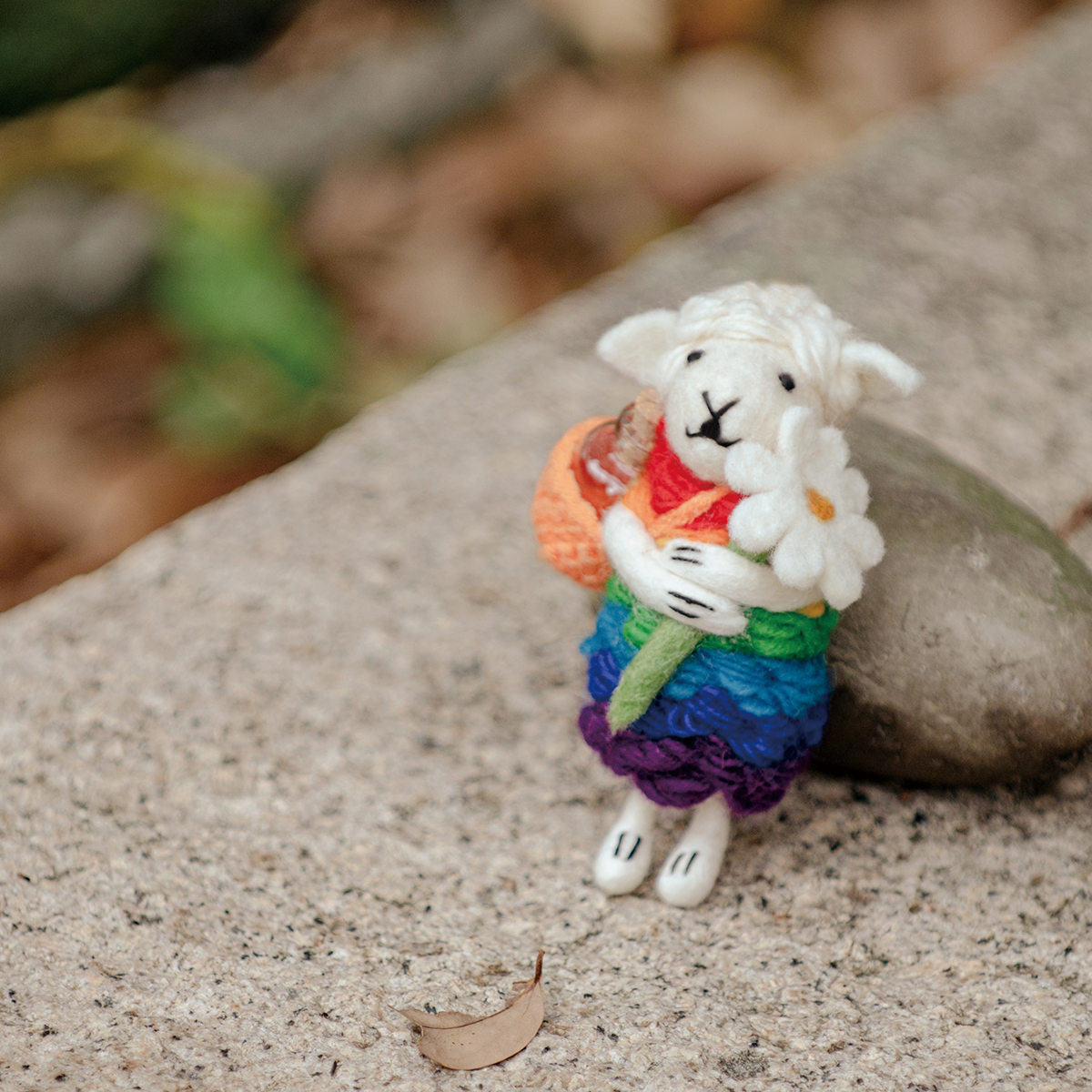 由尼泊爾婦女以羊毛氈手工制作的小羊。每一隻都有微小差異,她們將羊毛用水和皂液反覆搓揉,再加上細針慢慢雕琢,把一縷一縷的纖維變成可愛的小羊。
