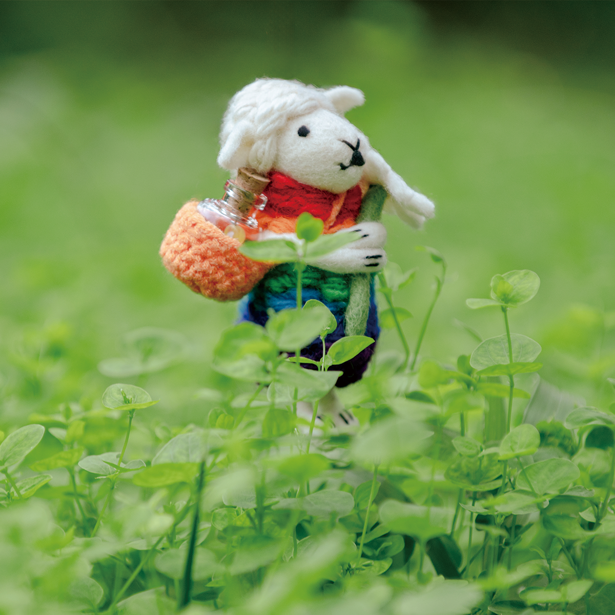 瓶子裡是小羊走過漫山曠野,一路收藏的微光與笑容,還有禮物店店長收集的倒地鈴種子。